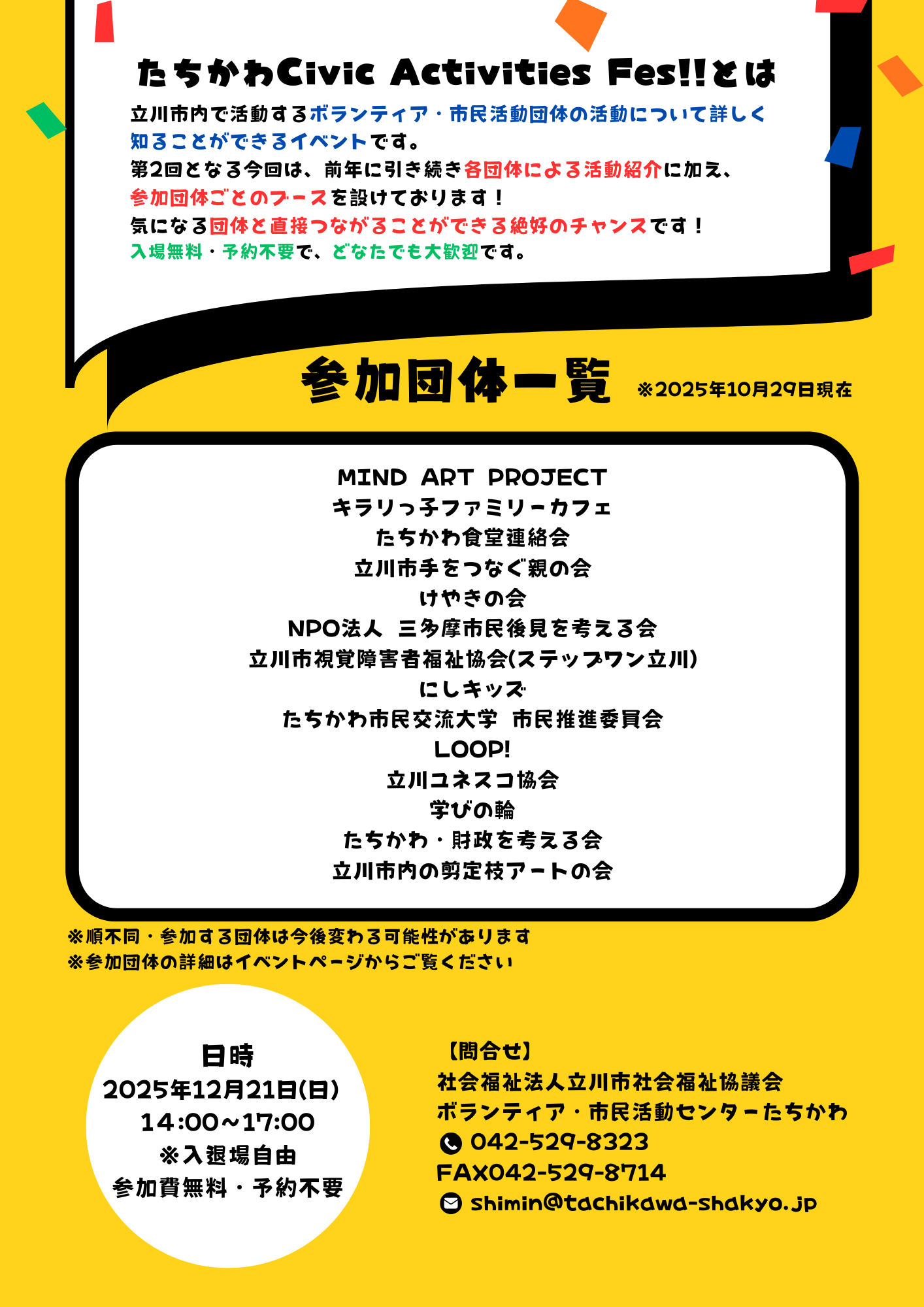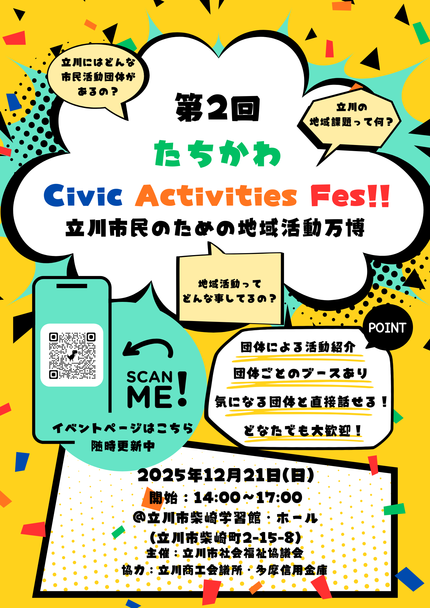 第2回たちかわCivic Activities Fes!!~立川市民のための市民活動万博~を開催いたします!
