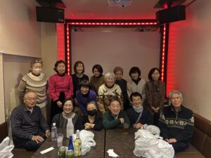 年度末の勉強会はJOYSOUND立川北口店で忘年会として実施しました。平日フリータイムを利用して、フリードリンクに加えて弁当、お酒を持ち込みゆっくりと会話、カラオケを楽しみました。